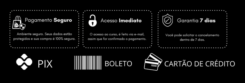 Você pode comprar via Cartão de Crédito, PIX ou Boleto.
