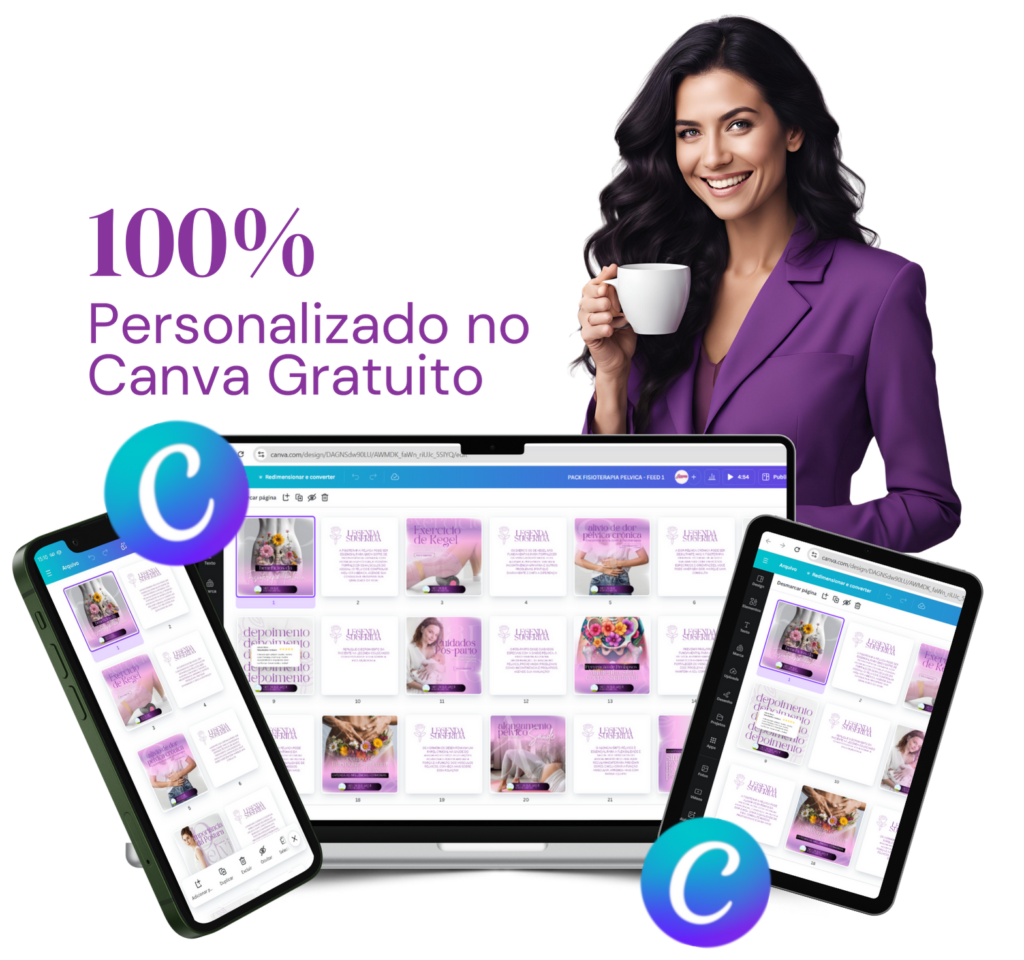 Sim! Basta você baixar o aplicativo do Canva e acessar o PACK CANVA por lá para criar suas postagens direto pelo seu celular.
