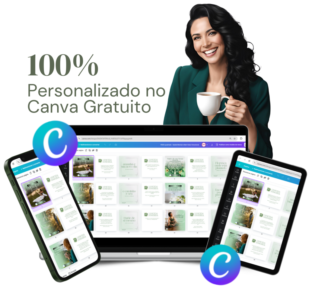 Sim! Basta você baixar o aplicativo do Canva e acessar o PACK CANVA por lá para criar suas postagens direto pelo seu celular.
